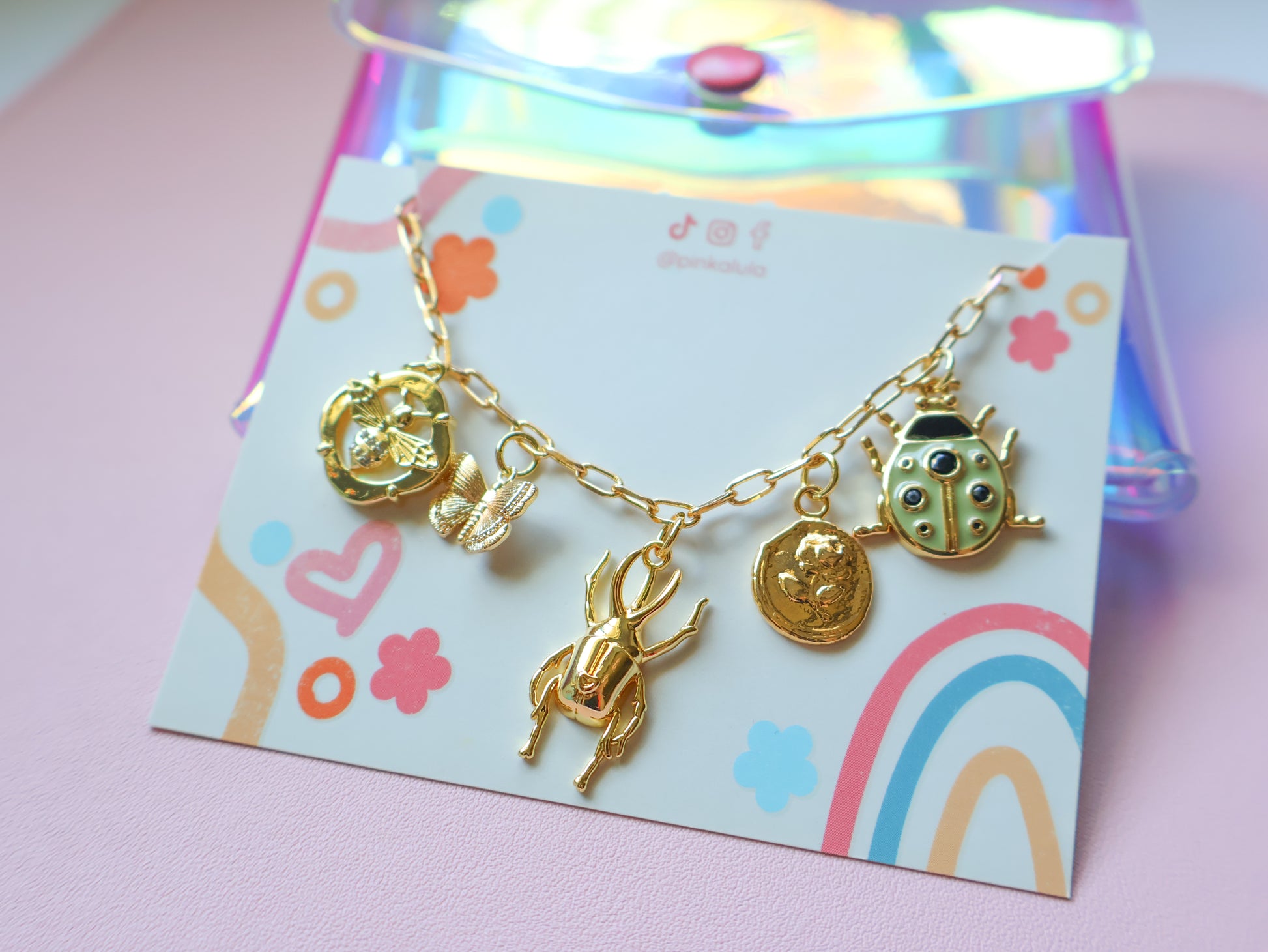 A golden parade of little bugs you’ll actually want around your neck. ✨ From ladybugs to bees, butterflies and beetles—this charm necklace is all about fun, sparkle, and personality.