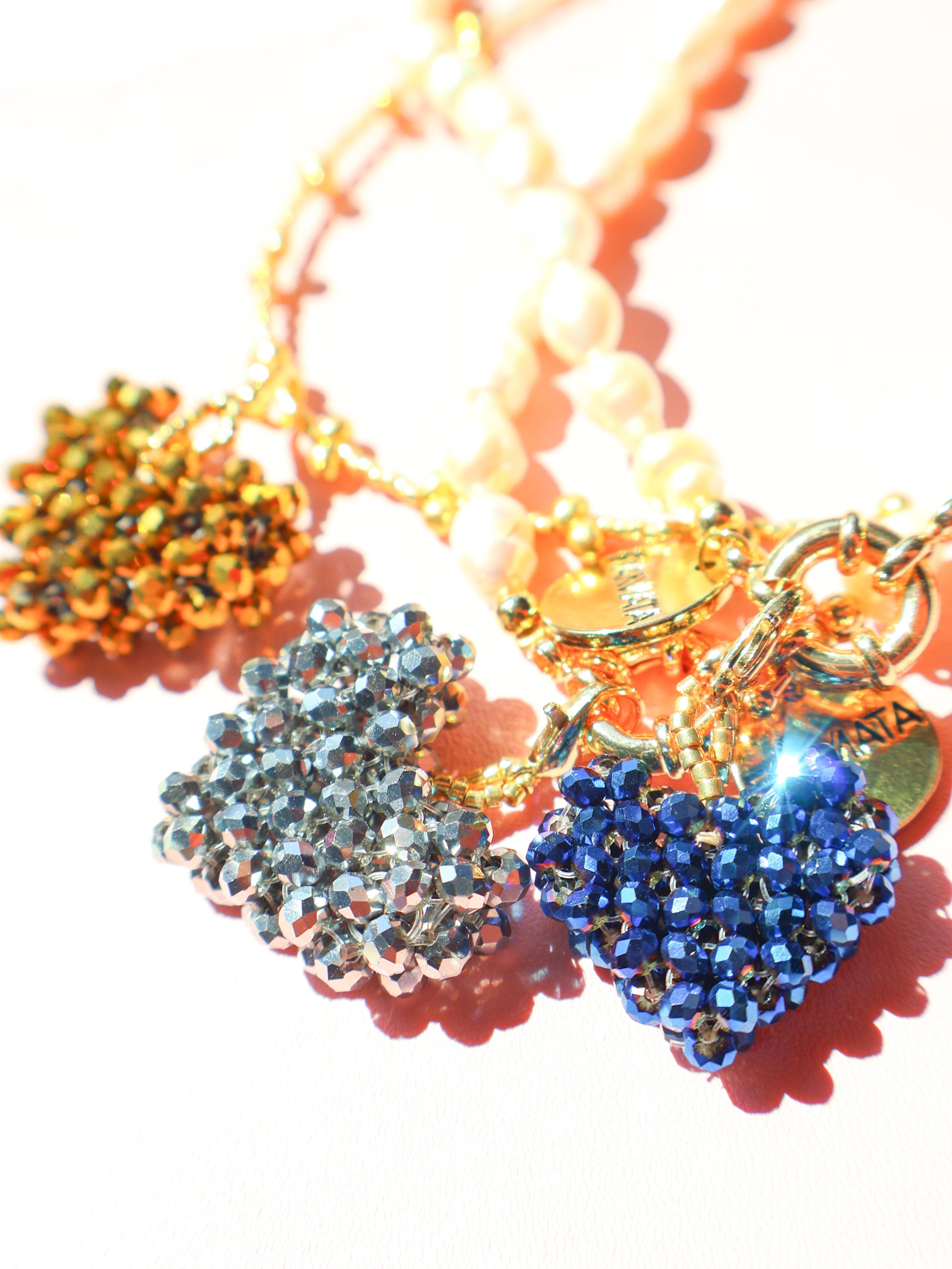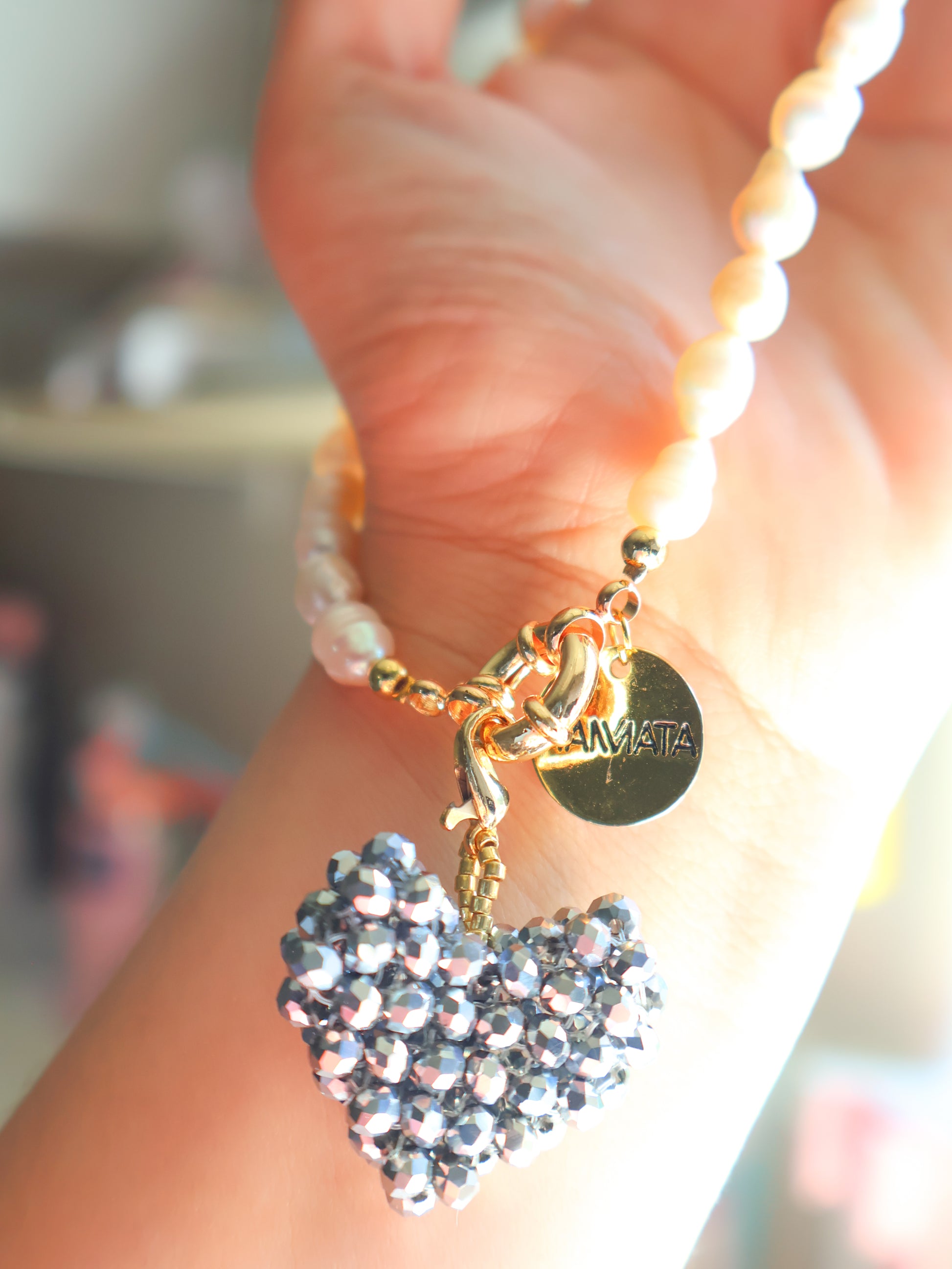 Handwoven with high-shine faceted crystals