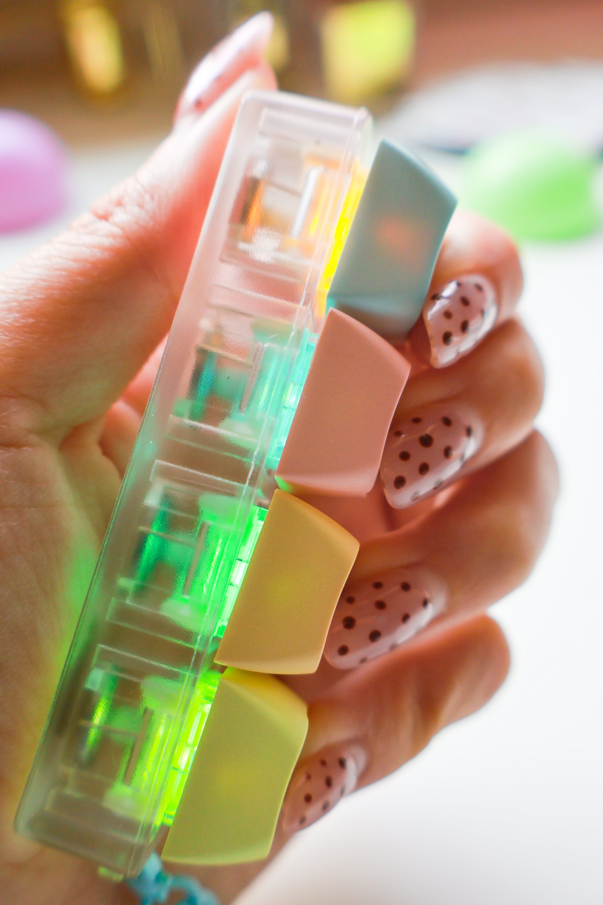 Clickable keycaps with LED lights