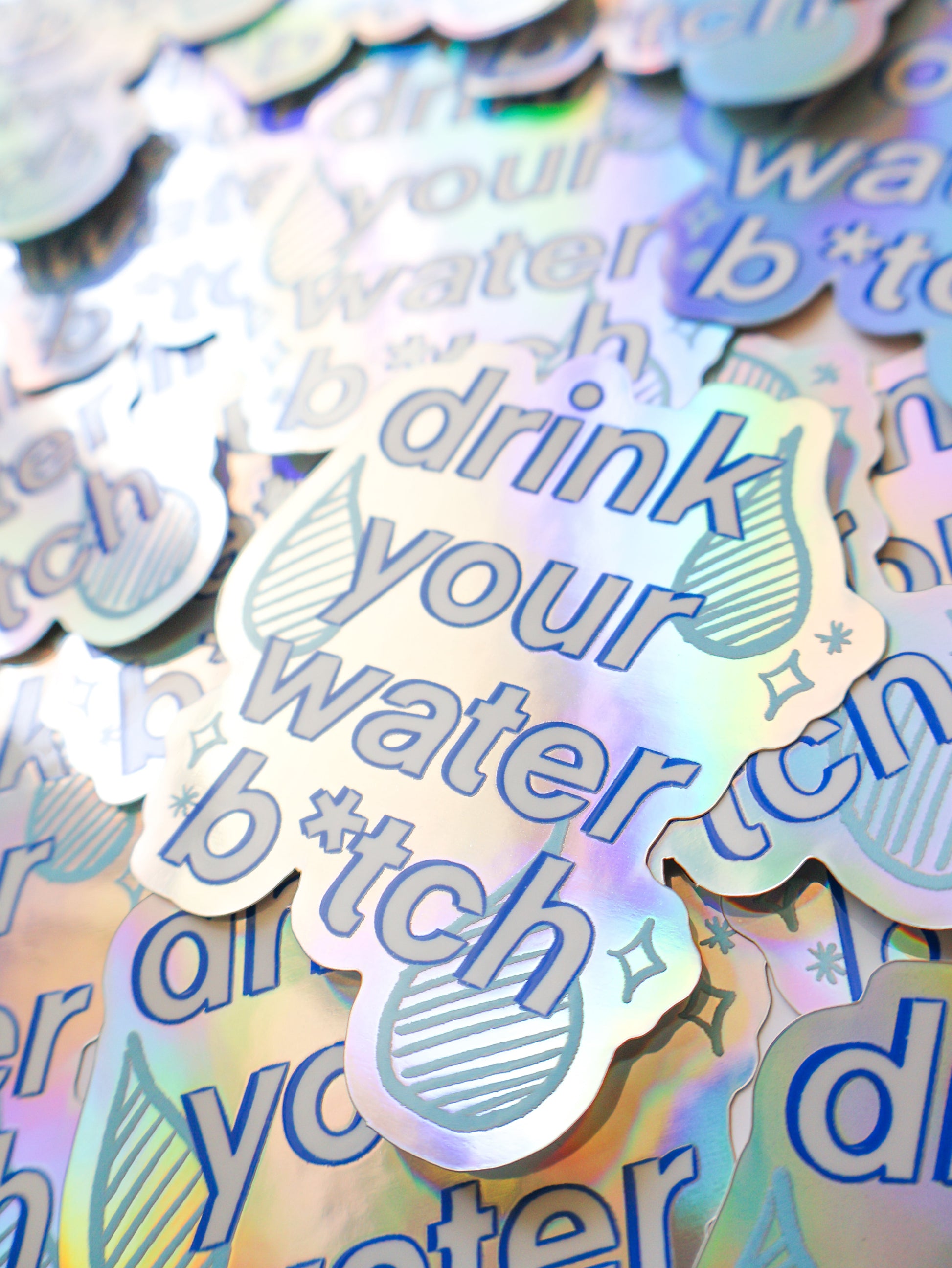 Drink Your Water B*tch - Vinyl Holographic Sticker