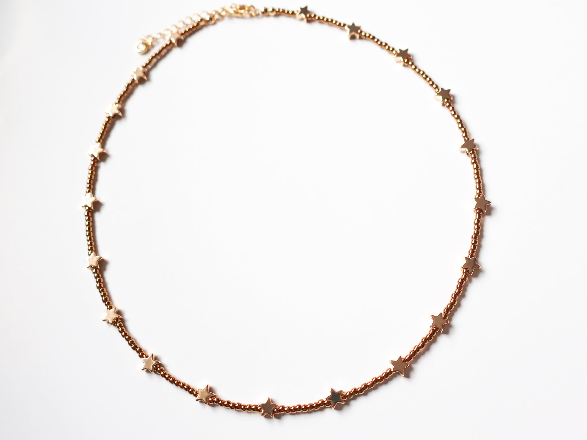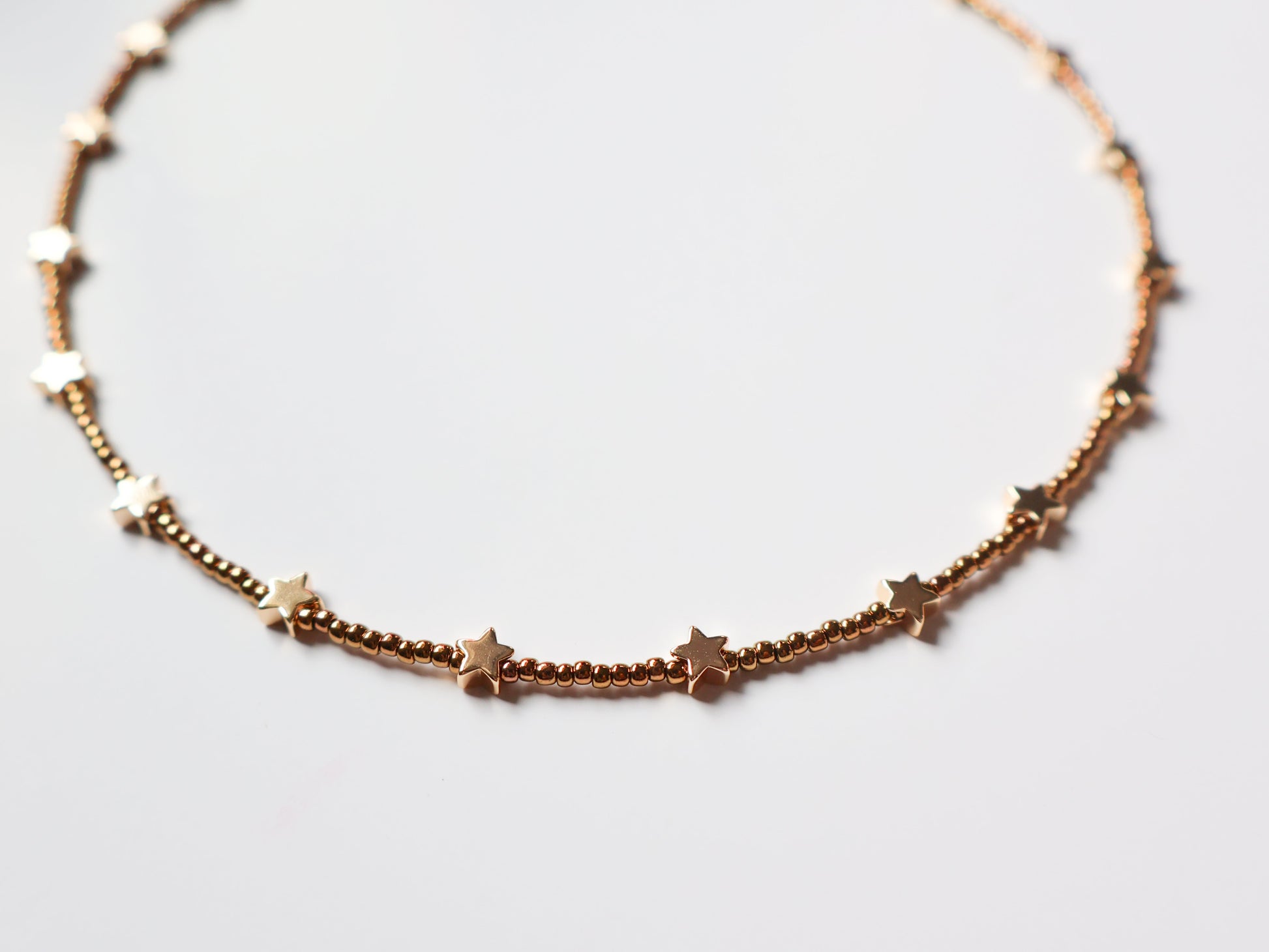 Shine bright like the stars with this simple yet beautiful metallic gold star necklace! Add a touch of sparkle to your outfit and stand out from the crowd with this unique piece. The perfect accessory for any occasion. (Twinkle twinkle, add to cart and make it yours!)