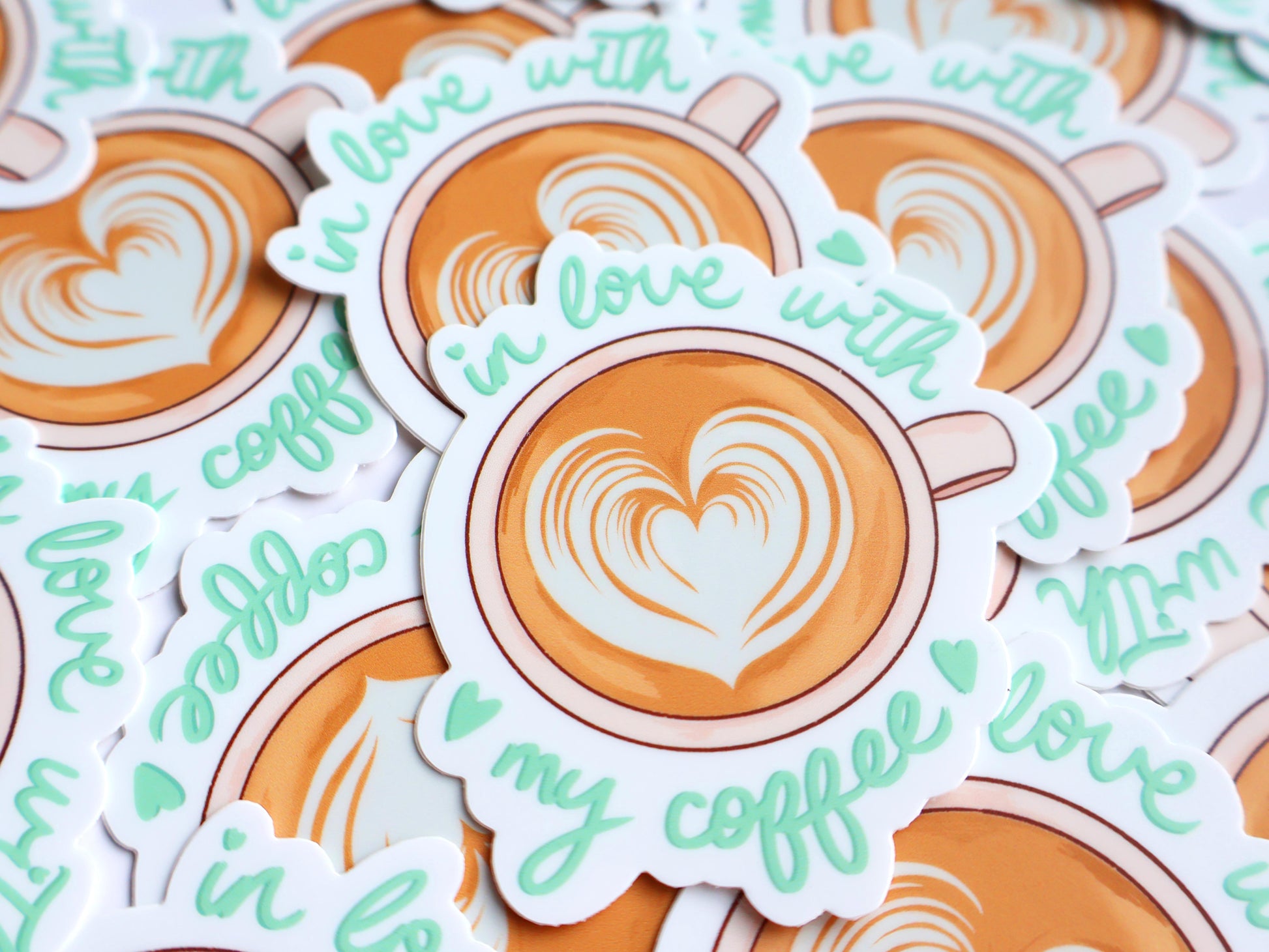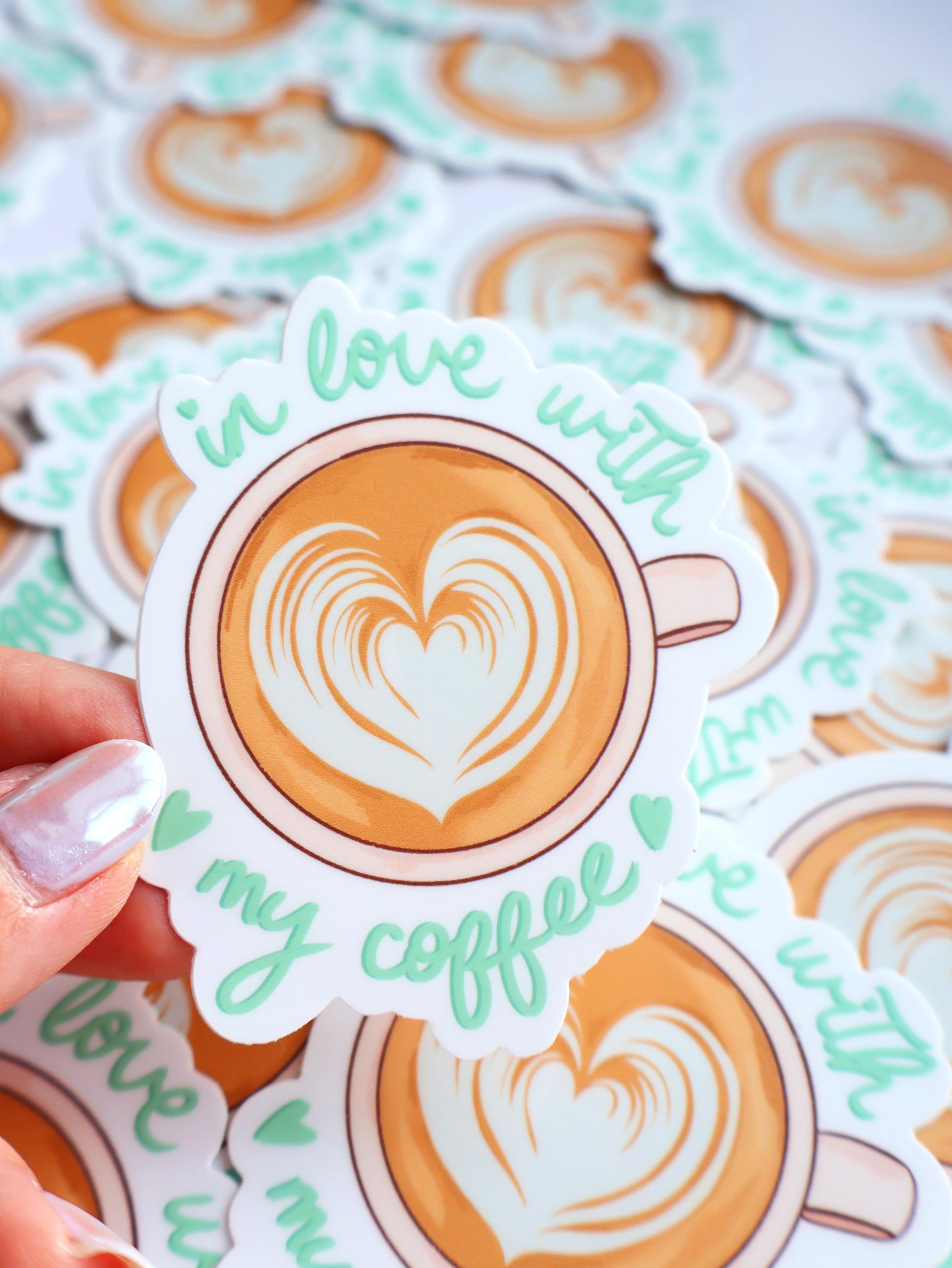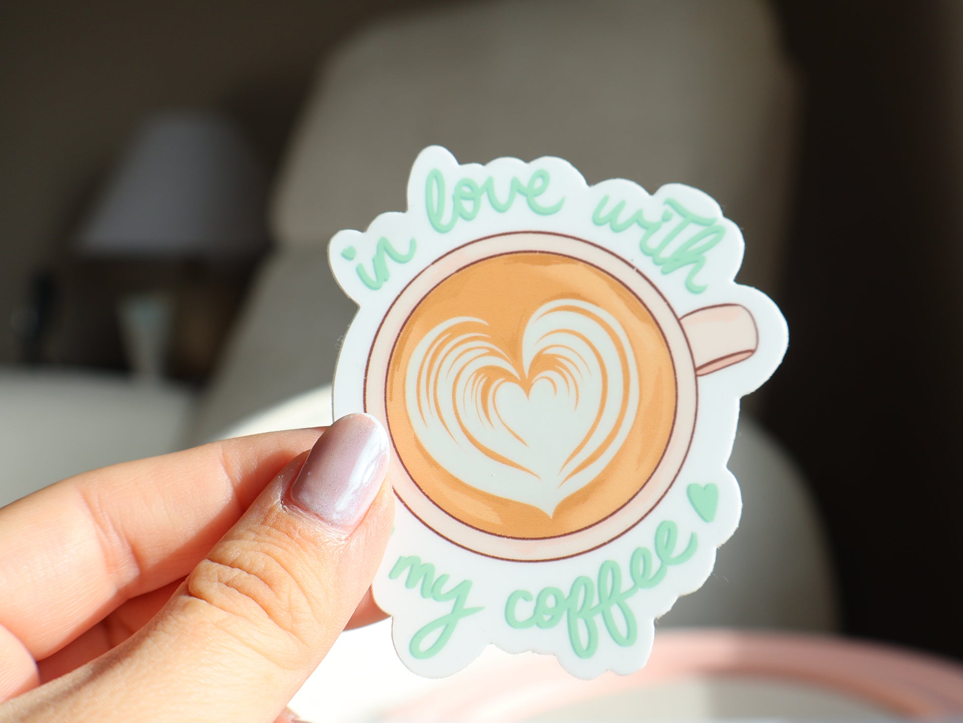 Show off your love for coffee with the "In Love With My Coffee" vinyl sticker! Waterproof for long-lasting use. Perfect for your water bottle, laptop, or any other surface you want to add a little personality to. Because let's face it, we all love our coffee!