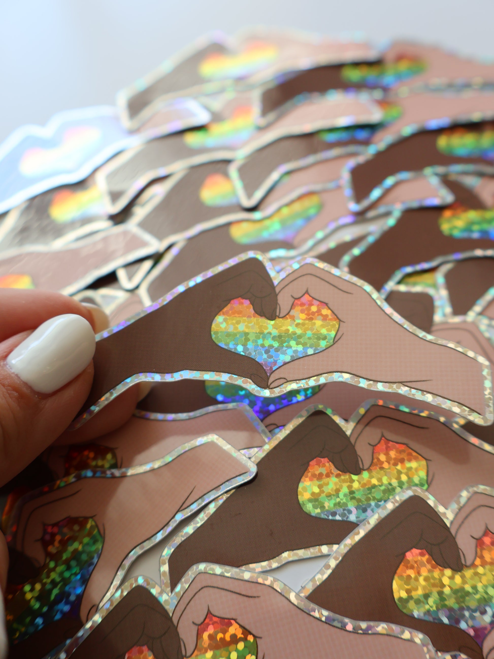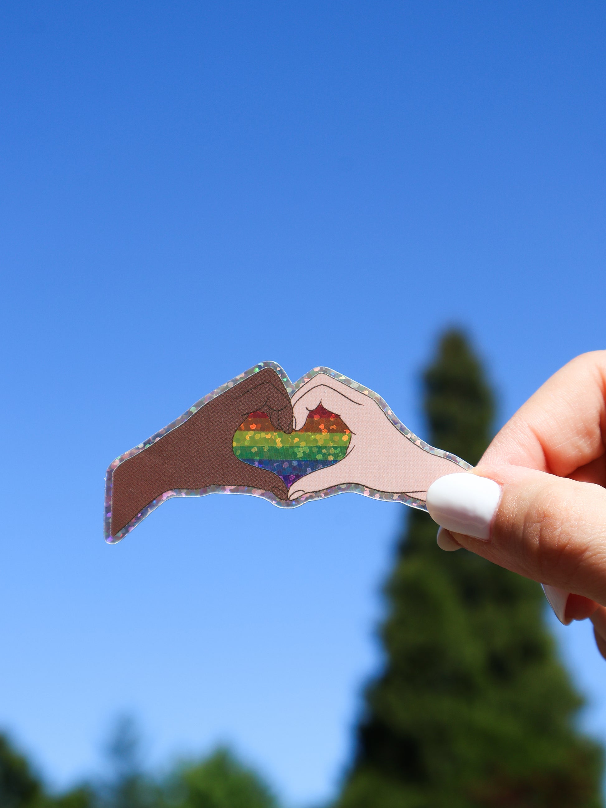 Celebrate love and unity with this stunning holographic sticker! Perfect for decorating laptops, water bottles, notebooks, and more!