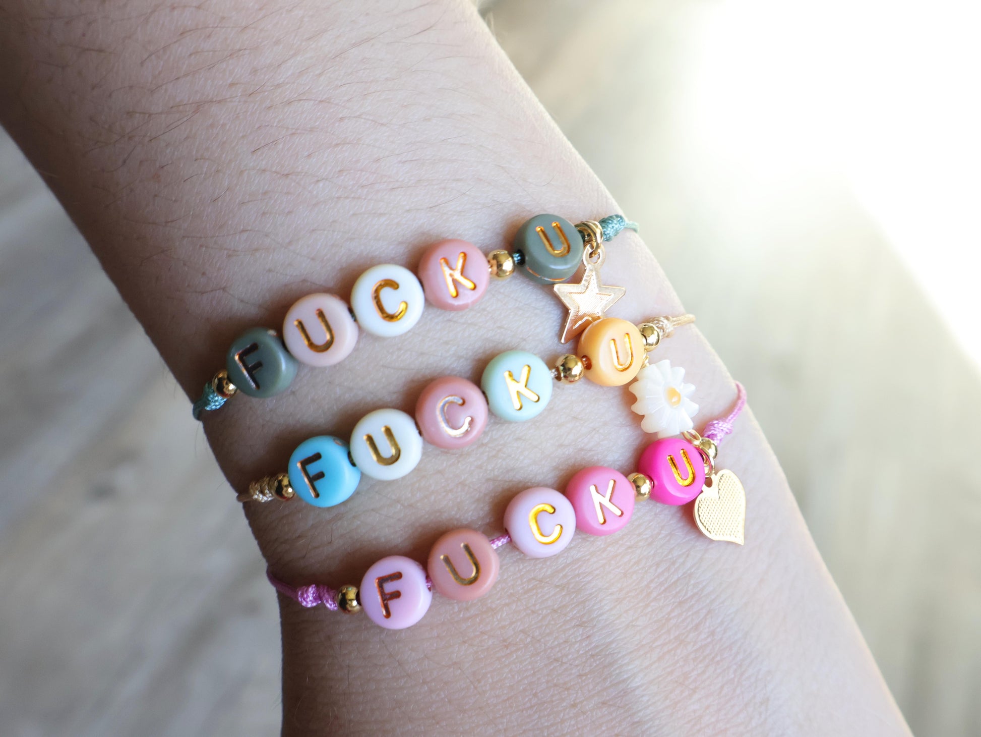 Make a bold statement with our Sassy F*ck You Adjustable Bracelet. Handmade with a gold dipped charm, wear it to express yourself and add a touch of sass to any outfit. Adjustable for the perfect fit. (Perfect for those moments when you just need to tell the world to back off!)